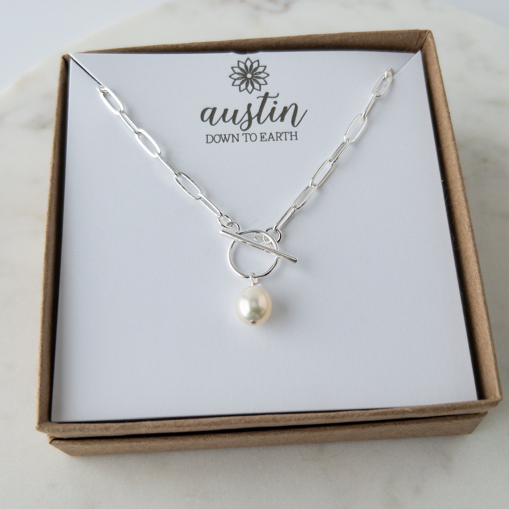 Features a genuine freshwater pearl on a sleek paperclip chain
